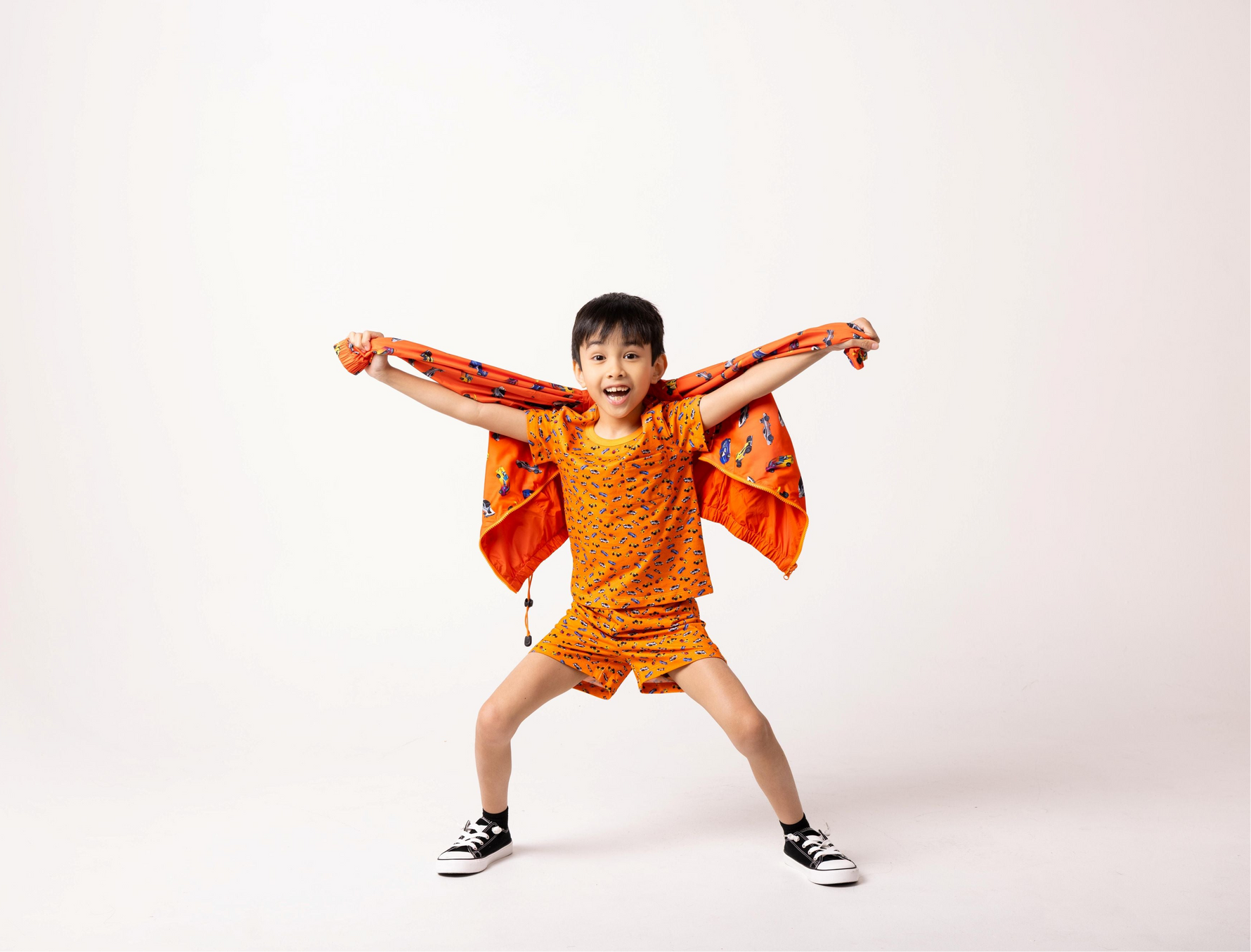 Features vibrant, eye-catching prints